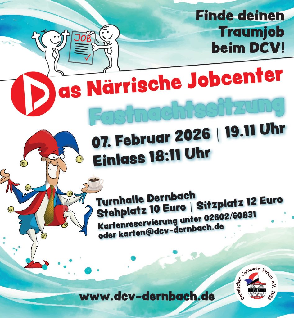 Jetzt heißt es nur noch Freunde und Familie zusammentrommeln und sich Karten sichern unter 02602-60831 oder per E-Mail unter karten@dcv-dernbach.de .